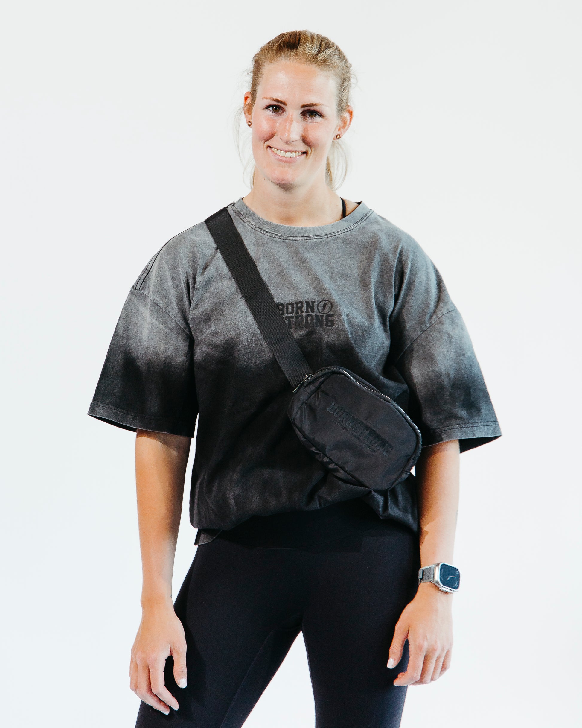Die BORN STRONG CrossBag ist das perfekte Style-Accessoire für den Alltag und vereint Funktionalität mit einem eleganten, modernen Look. Sie ist zwar nicht für intensive Workouts konzipiert, ist aber ein vielseitiger Begleiter, mit dem Sie Ihre Essentials stilvoll transportieren können. Ihr klassisches Schwarz-auf-Schwarz-Design passt perfekt zu unseren Quarter ZIPs und Oversized Shirts und sorgt für einen abgestimmten, straßentauglichen Look. Das mit einem Reißverschluss gesicherte Hauptfach ist in zwei Bereiche unterteilt und durch eine Fronttasche ergänzt, in der Smartphone, Geldbörse, Schlüssel oder sogar Tommys Tape schnell und einfach verstaut werden können. Der verstellbare Gurt ermöglicht eine individuelle Länge für einen bequemen Sitz und sorgt dafür, dass die Tasche perfekt sitzt. Die leichte und dennoch robuste Tasche kombiniert Polyester- und Metallkomponenten für eine lange Lebensdauer und eine edle Ästhetik. Perfekt für Freizeitausflüge, Reisen oder Sommerabenteuer: Die BORN STRONG CrossBag vereint Funktionalität, Style und Komfort in einem eleganten Paket und ist damit ein unverzichtbares Accessoire für jeden aktiven, modebewussten Lebensstil.